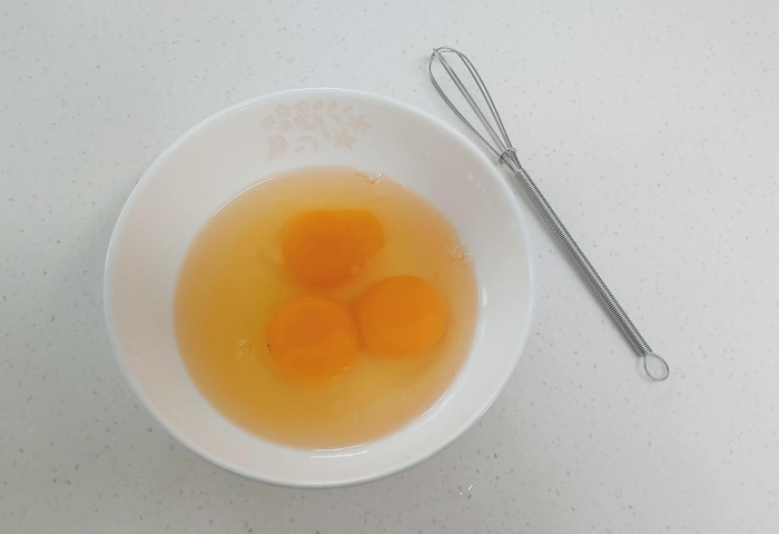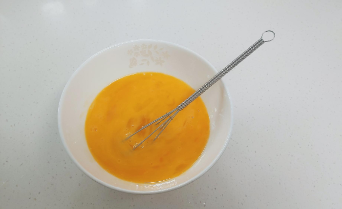 마지막 국물에 풀을 계란을 세알을 담고 거품기로 잘 풀어줍니다. 저는 3개를 풀었지만 2개 정도만 해도 될 것 같아요. 국물에 비해 저는 계란이 많았거든요. 아니면 계란 한알 정도는 풀어서 후라이팬에 구워서 고명으로 올려도 보기도 좋고 맛도 있을 것 같네요.