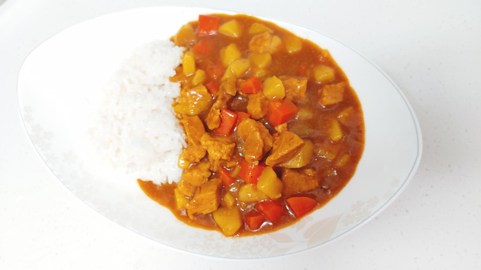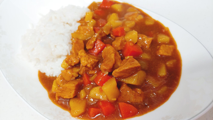 예쁜 그릇에 방금 지은 밥을 한쪽에 담고 카레를 담아줍니다. 카레는 먹을 때 비벼가며 먹는게 또 맛잇죠? 남편은 먹다가 카레가 부족하다고 더 먹고 했답니다. 생각보다 일반적인 카레와 크게 다른 맛은 아니었지만 조금 더 부드럽고 깊은맛이 나는 카레였어요.