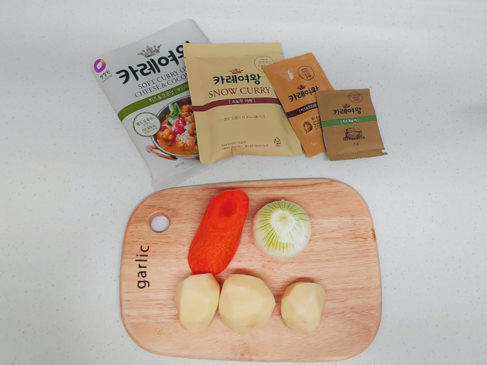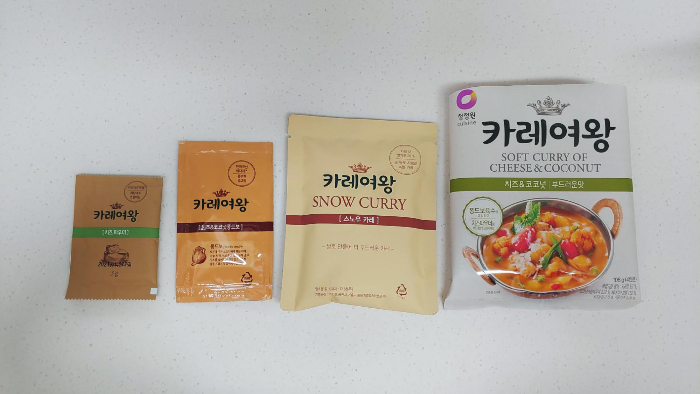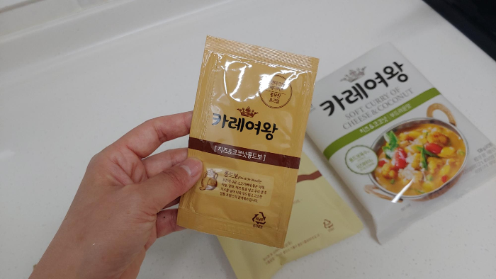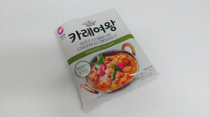 저는 청정원에서 나온 카레여왕을 준비했습니다. 치즈&코코넛 맛인데 새로운 맛에 도전해보고 싶어서 구매했습니다. 이때 어떤 맛일지 너무너무 궁금했어요. 우리가 일반적으로 먹는 카레의 맛은 아닐 것 같고 뿌팟뽕커리 맛인가? 어떤맛인가 너무 궁금했어요. 궁금하면 먹어봐야겠죠?