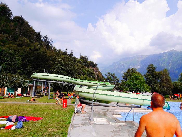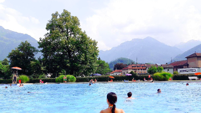 지금부터 제가 소개해 드릴 곳은 인터라켄에 있는 야외 수영장입니다. 한국인분들은 많이 안오시는 것 같던데 꼭 가보셨으면 좋겠어요. 뭐 엄청난 시설이 있는 것은 아니지만 수영하면서 아름다운 자연경치를 덤으로 볼 수 있는 곳이거든요.