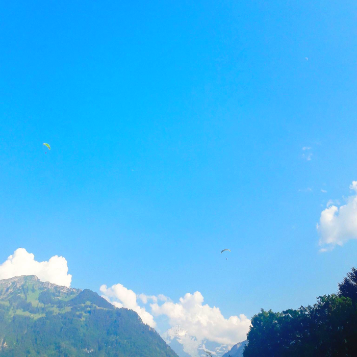 인터라켄에 도착했습니다. 인터라켄 기차역에서 내려서 밖으로 나오면 와... 하늘에 패러글라이딩 하는 사람들이 정말 많더라구요. 파아란 하늘에 색색별 패러글라이딩이 너무 예뻐보였어요. 저도 고소공포증이 없으면 도전해 봤을텐데 겁보라서 저는 패러글라이딩 못했습니다. 남편은 패러글라이딩 정말 하고 싶어했는데 제가 절대 못하게 했어요. 미안하네요^^;그냥봐도 아름다운 스위스인데 하늘에서 내려다 보는 인터라켄의 경치는 어떨 지 너무 궁금하네요.