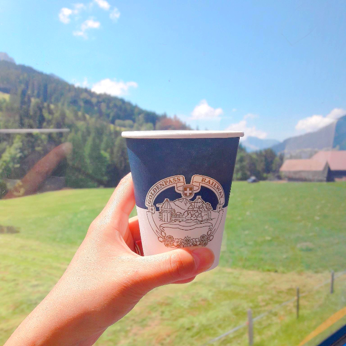 스위스의 높은 물가 덕분에 종이컵에 담긴 커피 한잔도 9천원정도 였던 것 같아요. 하하하하. 9천원짜리 종이컵 커피라니요... ^^;; 그래도 스위스에 왔으니까 기차에 탔으니까 마셔봅니다. 분위기가 좋아서 마시는 내내 기분이 좋았어요.
