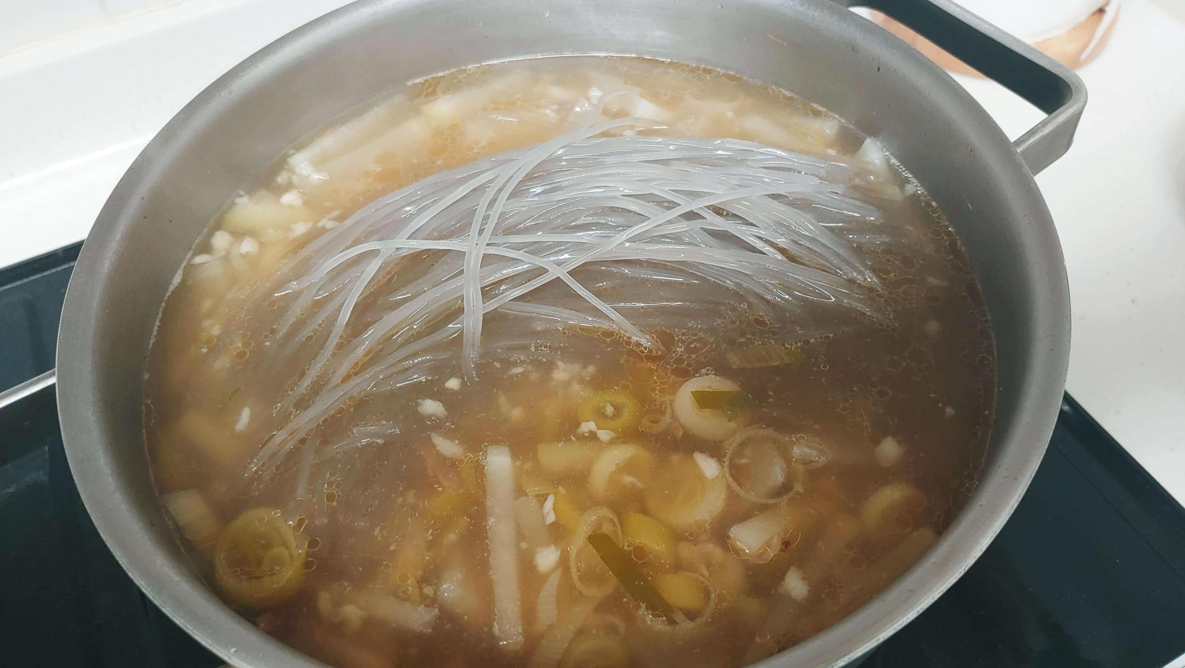 이제 여기까지만 하셔도 충분히 맛있는 소고기 무국이 완성됩니다. 하지만 저는 여기서 조금 더 나아가서 준비한게 있어요! 그건 바로 당면입니다! 꺄악! 당면 정말 사랑합니다!