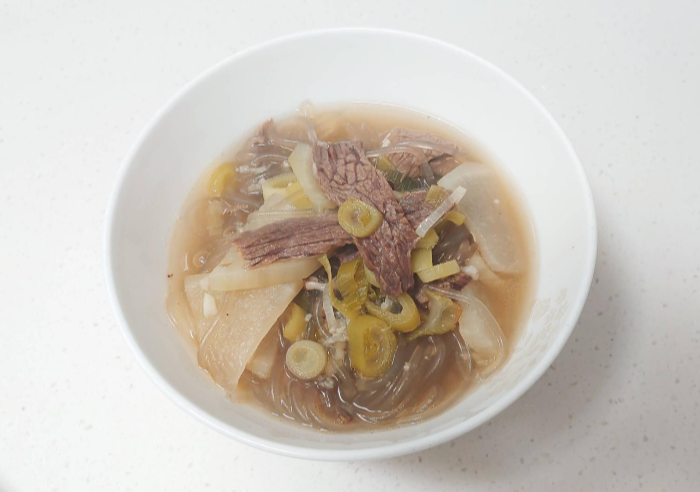 준비물 : 소고기, 무우, 당면, 파, 다진마늘, 국간장, 소금(or 다시다)