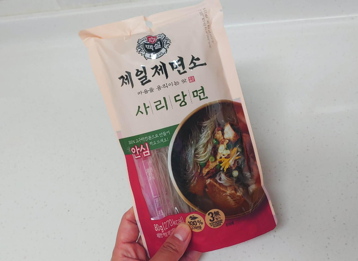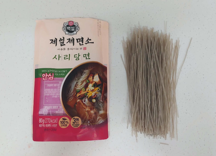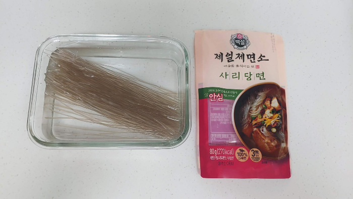 요즘 당면이 소분되서 많이 나오더라구요. 그 중에서도 저는 백설에서 나온 제일제면소 사리당면을 사용합니다. 저희 부부가 먹기에 양도 적당하고 정말 괜찮더라구요!