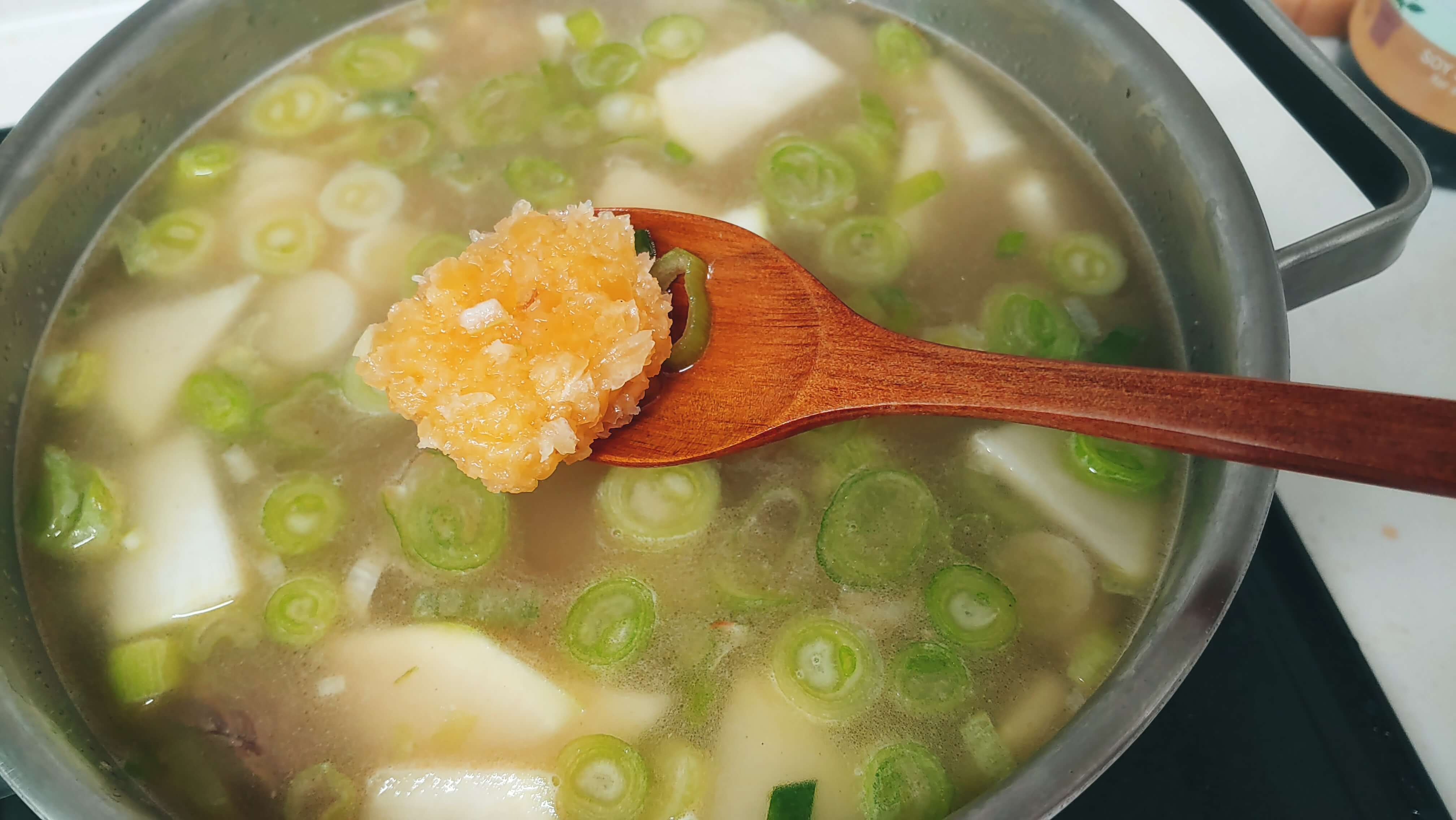 육수를 따로 내서 하실 분들은 다시다 넣지 마시고 육수에 소금간만 하시면 되고 육수 못내신 분들은 다시다 조금만 넣으세요. 육수를 내서 끓여먹는게 훨씬 맛있지만 소고기 다시다도 끝내주게 맛있는 육수를 만들어줍니다.