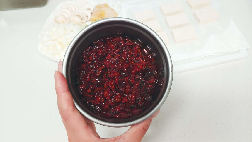 그냥 물에 섞고 넣으면 이런 모습이 나오겠지요? 저는 일일이 다 스푼으로 양념장을 다 풀어야 하는 수고스러움이 있었습니다. 그러니까 꼭 미리 물에 풀어서 휘리릭 부어주세요~ 그리고 이제 약불로 줄여주세요. 여기서 푹 익히신 다음에 드셔도 됩니다.