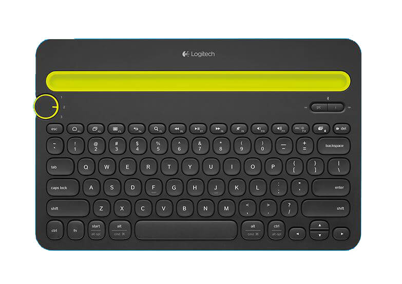 로지텍 블루투스 멀티 디바이스 키보드 k480은 기기의 종류나 OS에 상관없이 여러대의 블루투스 장치를 한 번에 연결하여 사용할 수 있는 블루투스 키보드입니다. 다이얼을 돌려서 손쉽게 연결된 기기 별 전환이 용이합니다.