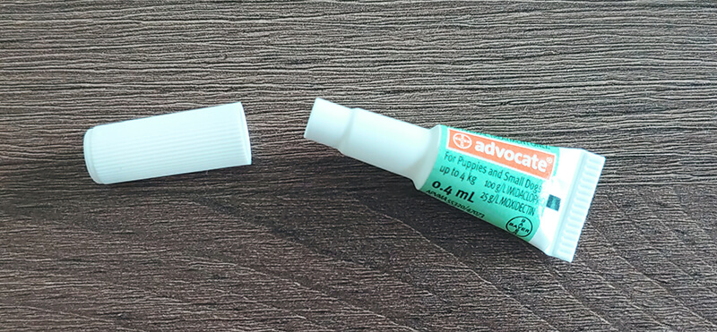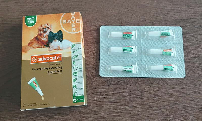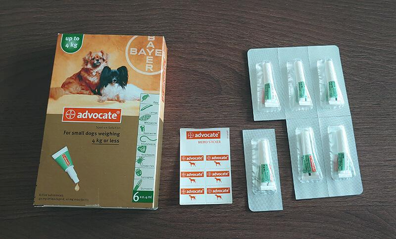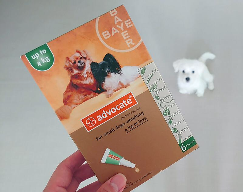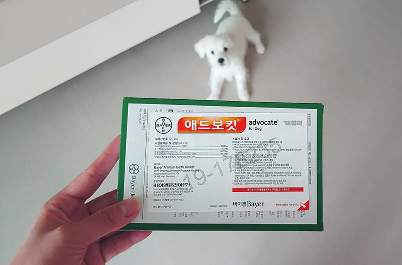 4kg까지의 작은 소형견을 위한 애드보킷이구요. 0.4ml의 약이 6개 들어있습니다. 한달에 한번 발라줘야 하는거니 6개월동안 사용할 수 있는 양입니다. 가격은 꽤 비쌌어요. 병원마다 다른 것 같으니 이건 동물병원이나 동물의약품 판매하는 약국에 문의해보세요.