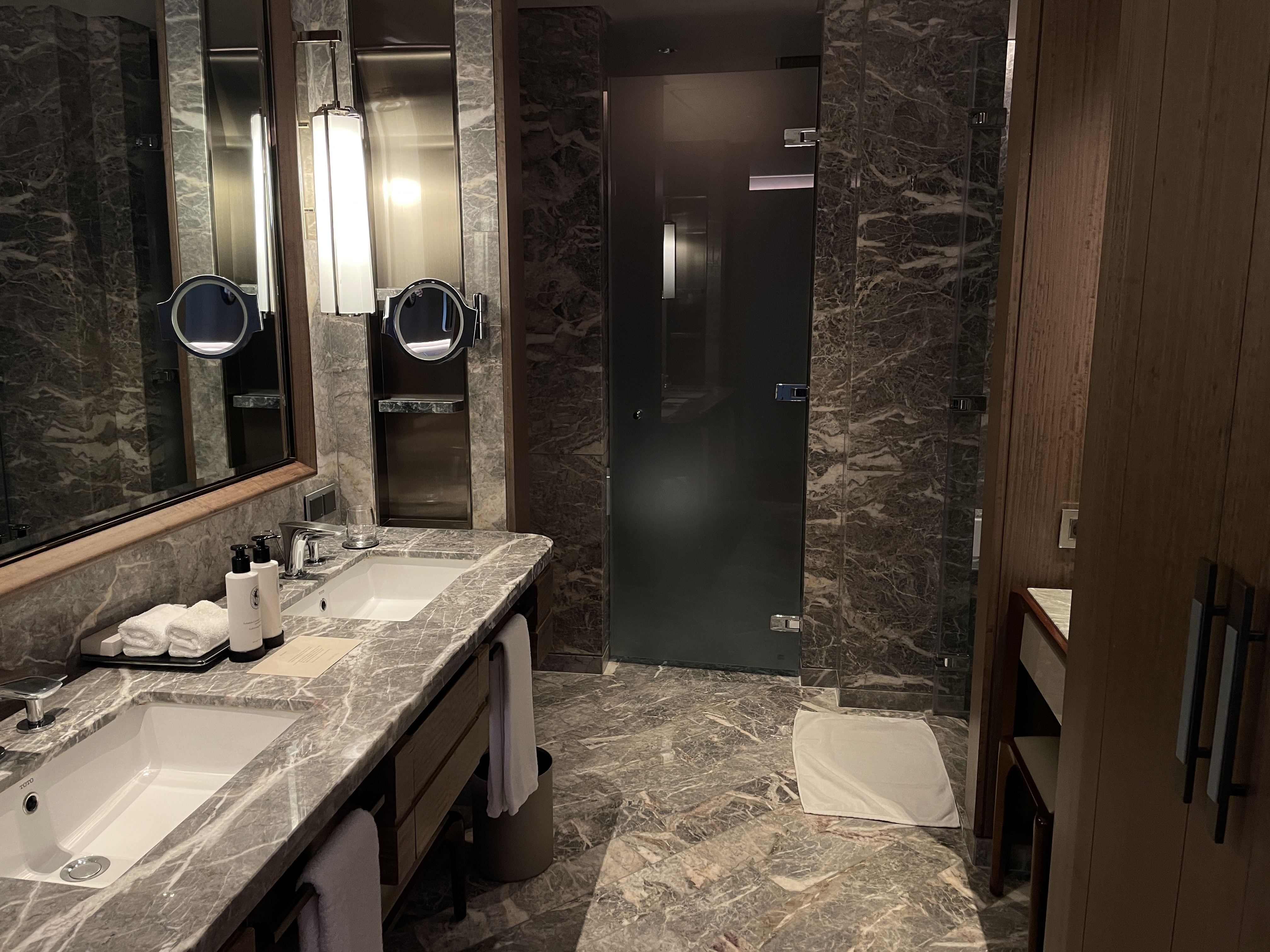 여기는 욕실입니다. 대리석된 인테리어가 욕실은 한층 더 고급스럽게 보이게 합니다.