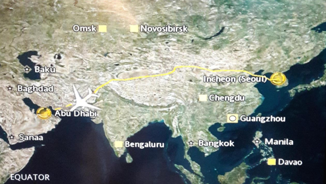 아부다비에서 프랑스 파리로 날아가고 있습니다.