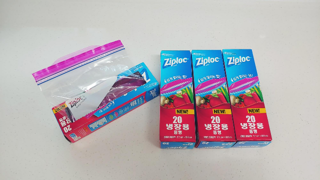 짜잔~! 제가 사용하는 지퍼백입니다. 저는 한번에 살 때 여러개 사서 사용하고 있어요. 은근히 지퍼백이 사용할 곳이 많더라구요. 그래서 저는 금방금방 쓰거든요. 그중에서 음식물 보관할 때 사용하고 있어요! 어떻게 사용하는지 설명드릴게요.
